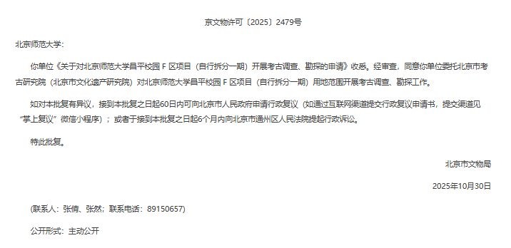 经北京市文物局批准,北京师范大学昌平校园 F 区项目开展考古调查、现场勘探工作。